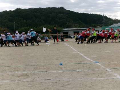 5・6年生 綱引きの様子です。クラスみんなで力を合わせて引きました。