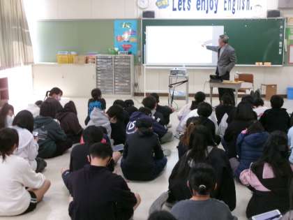 【6年生 里山事前学習】11/6 公開日 2025/11/07 更新日 2025/11/07 各学年から 6年生は、11月末に行う里山歩きの事前学習として地域の方からこの地区の歴史についてのお話を聞きました。自分たちの住む地域の歴史について新たに知ることも多く、興味深く聞いていました。