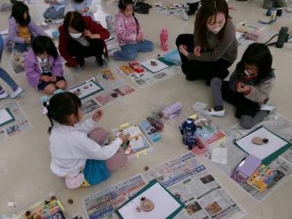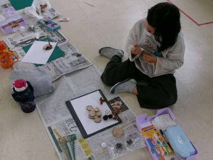 【1・2年生 どんぐりや木の実を使った工作(1)】11/18 公開日 2025/11/28 更新日 2025/11/28 各学年から 1・2年生は、生活科の時間に集めたどんぐりを使って工作を行いました。地域講師の方からたくさんの木の実を分けていただき、作り方を教えてもらい、楽しく工作をすることができました。1年生の様子です。