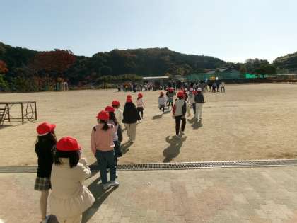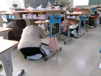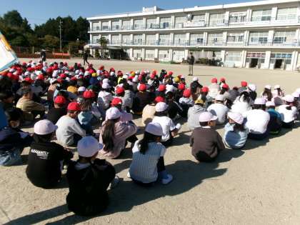 避難訓練を行いました。地震が起き、その影響で火事が起きた時の避難の仕方を確認しました。4分ほどで全校児童が避難完了しました。静かに冷静に避難できました。