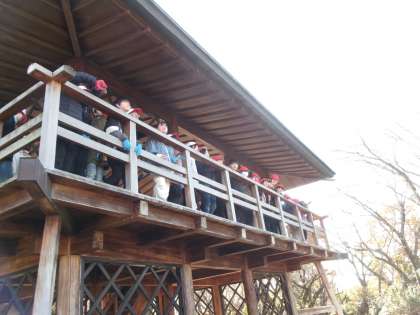【6年生 里山歩き(4)】11/27 公開日 2025/11/28 更新日 2025/11/28 各学年から いよいよゴール地点。古瀬間城址では、展望台に上って小学校の方を見渡すことができました。お世話になったボランティアさんや地域の方にお礼を言って、学校に戻りました。