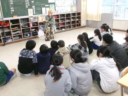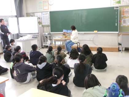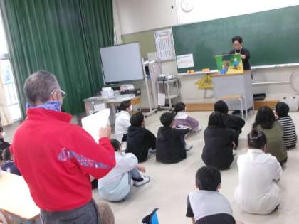 5年2組と6年生の様子です。6年生は地域に伝わるお話の紙芝居を聞きました。