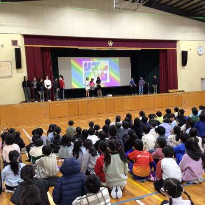 【150周年記念式典(5)】12/6 公開日 2025/12/12 更新日 2025/12/12 学校行事 6年生は、里山学習で学んだことを全校に伝えるために、ラップ調の音楽「リズムで里山」を披露しました。全校みんなで音楽を楽しみながら里山について学びました。