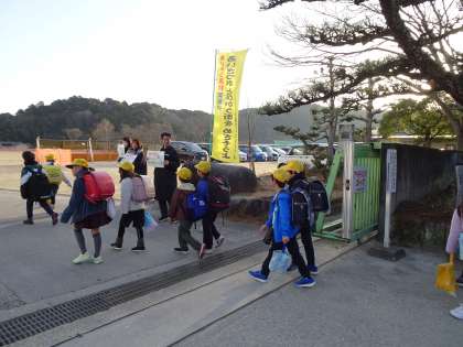 【あいさつ運動】1/19〜 公開日 2026/01/30 更新日 2026/01/30 PTA活動 TEAM益富「あいさつ返事ありがとう」の強調週間が始まりました。初日にPTA役員が朝の登校時に子どもたちにあいさつを呼びかけました。子どもたちの中には積極的にプラカードをもってあいさつ運動に参加する子もいました。寒い中、元気なあいさつが響いていました。