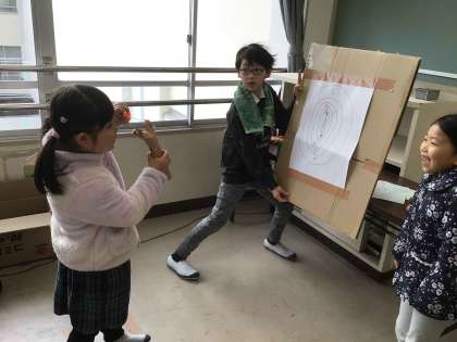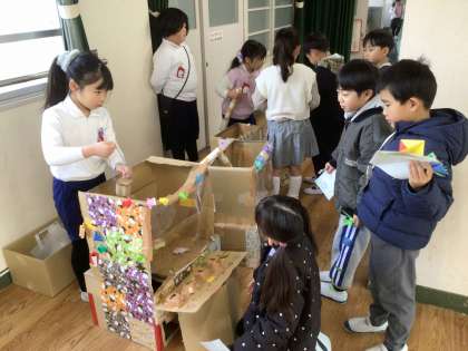 【2年生 1年生を招待しておもちゃ祭り】1/23 公開日 2026/01/30 更新日 2026/01/30 各学年から 2年生は、1年生を招待しておもちゃ祭りを行いました。自分たちが作ったおもちゃの使い方を1年生に教えました。1年生は、お兄さん、お姉さんにやさしくして教えてもらい、景品をもらったりして楽しく過ごしました。