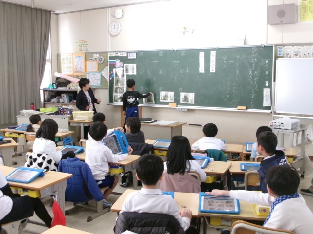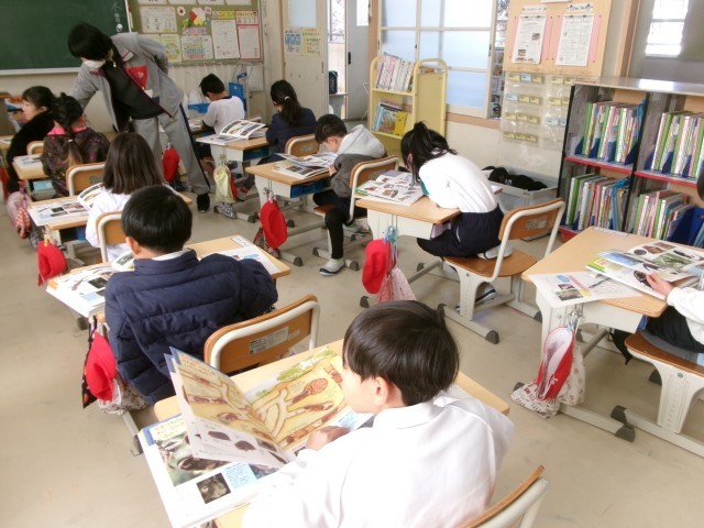 【1・2年生 図書館出前授業】2/12 公開日 2026/02/16 更新日 2026/02/16 各学年から 豊田市中央図書館の方が出前授業に来てくださいました。1年生は図鑑を使って調べる学習、2年生は学習用タブレットを使って物語の読み取りをしました。