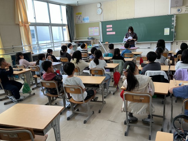 今日は2日めということもあって、学年集会でみんなの気持ちを高めたり、係決めなどをしている場面が多くありました。子どもたちは昨日より慣れて、笑顔が増えていたようです。