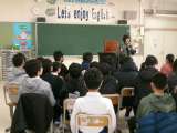 養護教諭が1・2年生に絵本を使って「体のだいじなところ」についての読み聞かせをし...
