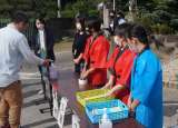 高学年と7・8・9組のお話の森。6年1組では、古瀬間地区にちなんだ手作りの紙芝居...