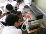 4年生は、ホタルの餌になるカワニナを育てています。カワニナの餌に、ジャガイモやキ...