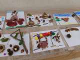 1・2年生は拾い集めたどんぐりや葉、木の実を使って作品作りをしました。講師に宮前...
