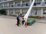 5,6年生は救助袋による避難体験を行いました。3階のテラスから救助袋を使って滑り...