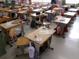 本年度は、古瀬間小学校創立150周年の節目の年。横断幕を校舎とプール横のフェンス...