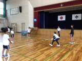 茶道クラブと棒の手クラブの様子です。 何回か体験するうちにだんだん体が覚えてくるのでしょう。がんばっていました。