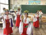 巫女舞クラブは、衣装を着て練習中でした。 この穂は、天気が悪く、教室や廊下で活動するクラブも見られました。