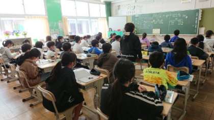 2年生の写真は授業の終わりのあいさつをするところです。