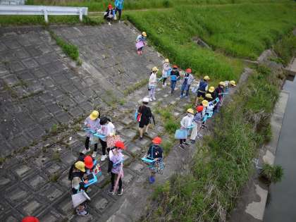 4年生は総合的な学習の授業で、自然に関することを勉強しています。5月7日には、逢妻女川に見学に行きました。実際に川を見ることで、興味・関心をもち今後の学習に取り組んでいけると思います。今後は、見学で気付いたことをもとに、学習を進めていきます。