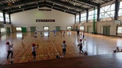 上の写真は3年生の体育の授業の写真です。ボールを投げて、手をたくさんたたいてからボールをキャッチしています。