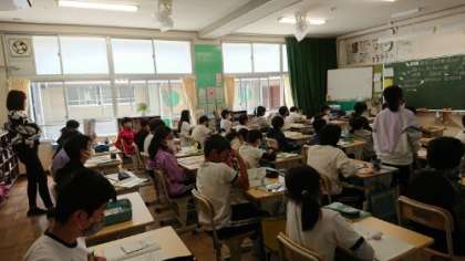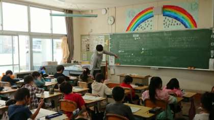 中の写真は3年生の算数の授業の写真です。文章題を線分図を使って解いていました。