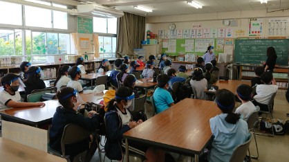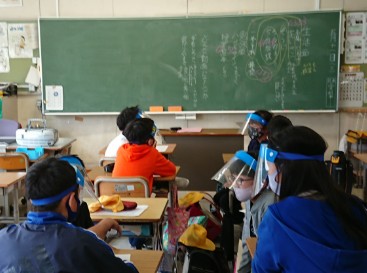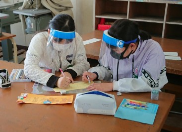 下の写真はライブラリー委員会です。コロナ感染防止対策をしながら読書習慣が浸透するような活動をしています。黒板いっぱいに意見が出ていました。