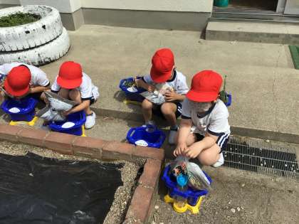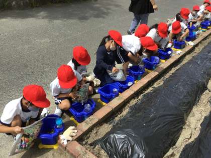 植木鉢に土や肥料を入れることに苦戦していましたが、みんな自分のアサガオのためにと一生懸命活動していました。