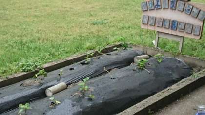 なかよし学級の畑には、さつまいもの苗が植えられています。大きなさつまいもがとれるかな?