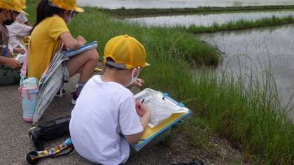 5月18日火曜日、北西コースと南東コースに分かれてまちたんけんに行きました。南東コースでは、住宅やお店の多い街並みを実際に目で見て確かめることができました。北西コースでは、左右に広がる田畑や果樹園など、逢妻女川の近くの土地利用の様子について確かめることができました。来週は、今回と違うコースへ探検に出かけ、土地利用の違いについて考えるための様々な発見ができるとよいと思います。