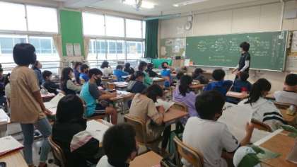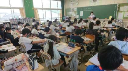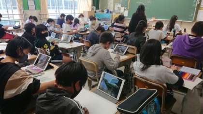 上の写真は家庭科の授業です。「調理の目的や手順を考えよう」がねらいです。学校では調理ができない状況ですが、家でお手伝いしてください。