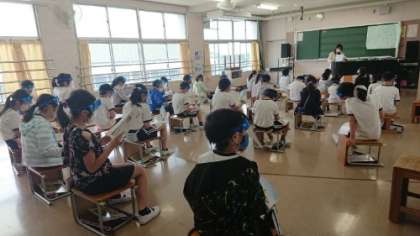 下の写真は4年生の音楽の授業です。コロナ感染防止のために制限がありますが、本時は鑑賞の授業をしていました。