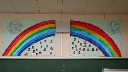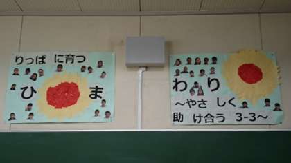 3年3組の級訓は「ひまわり」、3年4組は「にじ」です。