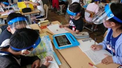 4年生の総合の授業です。地球調査でわかったことを発表し、自分たちにできることを考えました。