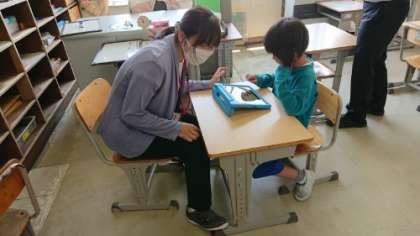 上の写真はなかよし4組の国語の授業です。「い」から始まる言葉を集めていました。