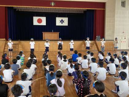 6月10日(木)の朝の時間に4年生が学年集会を行いました。学年集会では、各クラスの学級代表が下校の整列を高学年らしく、だまってすばやく、みんなで協力して頑張ろうと伝えました。それを受けて、全員でどうしていくかを話し合って考えました。その結果、「注意をされる前に自分で考えて行動していこう」と目標を決め、4年生全員で取り組むことになりました。4年生のこれからの成長を期待しています。