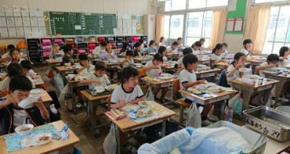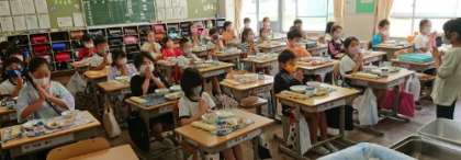 3年生の給食の様子です。新型コロナウイルス感染防止対策の配膳、そして、無言の給食です。しっかり食べて体力をつけてくださいね。
