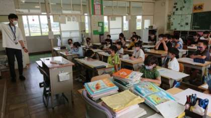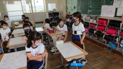 4年生の図工の授業です。忘られない思い出を絵にしていました。下絵の段階でした。色をつけると感じが違ってくることでしょう。4年1組はつりをしている絵が多かったような。