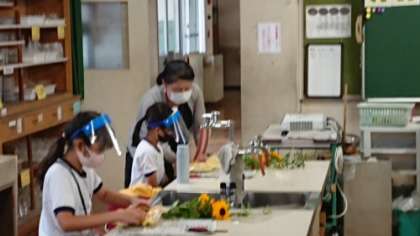 今年度、やっとクラブができました。今年度も専門的な知識や技能をもってみえる地域講師をお招きしました。写真は華道です。季節の花を生けました。