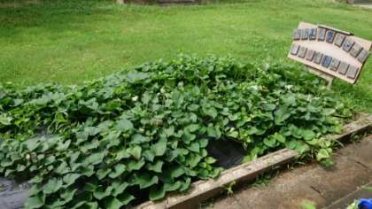 なかよしの畑ではさつまいもを育てています。大分葉っぱで土がみえなくなってきました。土の中でさつまいもができてきたかな。