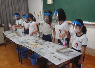 もう一つは土砂崩れ実験を全員で体験しました。水で土が流れて家がつぶれる様子が見られました。その後、⭕❌クイズをしました。