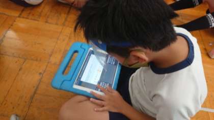 2つの体験ゲーム後、みんなで発表でよかったところや改善した方がよいところを出し合いました。振り返りはタブレット