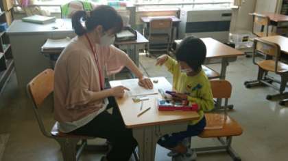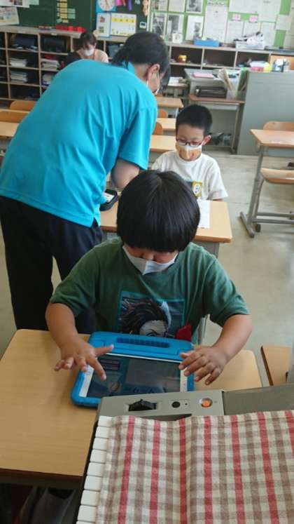 なかよし学級の子たちの授業です。各自の学習プリントに真剣に取り組んでいます。