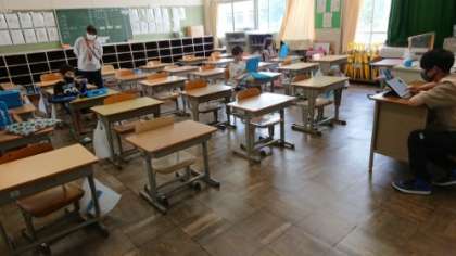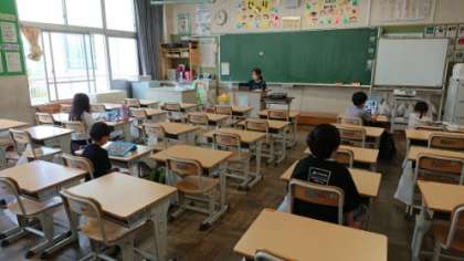 放課後児童教室(どんぐり)の子たちが家にいる友達の顔がみられてうれしそうです。