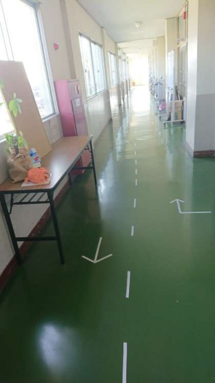 子どもたちが学校にくる前に、担任の先生たちがトイレ掃除をし、廊下のテープも張り直していました。夏休み明けですが、子どもたちが気持ちよく過ごすことができればいいと思います。