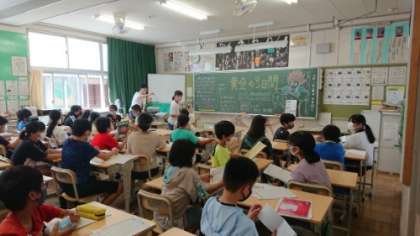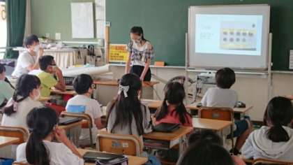 6年生の教室を覗くと、自由研究の発表をタブレットでしていました。