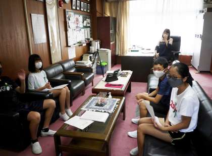 オリンピックの話の中で、プロジェクト委員会の子にオリンピックの感想を簡単でいいから話してほしいとお願いしたところ、とても立派にお話してくれました。教員が原稿を直すようなこともしていません。原稿については、学校だよりでお伝えしたいと思っております。また、司会の二人もとても立派でした。にじいろ集会の前にプロジェクト委員会の4人が会話をしているのですがやる気に溢れていてとても頼もしかったです。