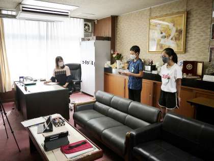 にじいろ集会(全校集会)は2学年だけが体育館に集合し、他の学年はリーモートで開催していました。しかし、9月1日は緊急事態宣言中で、豊田市でも感染者が多く出ているため、全学年教室で、校長室から全クラスにリモートで開催しました。現在、学校ではこのようにコロナ感染防止対策を強めております。