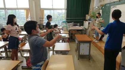 朝の会から1時間目になるときに、なかよし学級に行ったら、楽しそうに指揮をしていました。