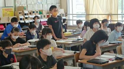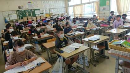 5年生の算数の授業です。公倍数と最小公倍数を学んでいました。真剣に授業に取り組んでいます。