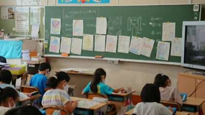 3年生の図画工作科の授業です。「くぎうちトントン」の設計図を描いています。1時間でかなりの子たちがかきあげました。