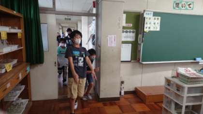不審者を担任が教室から遠ざけているうちに、6年4組の子たちは教室から理科室に避難しました。そして、さらに不審者が遠ざかったときに体育館まで避難しました。