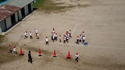 3階の廊下を歩いていたら、運動場から楽しそうな声が聞こえたので覗いてみました。